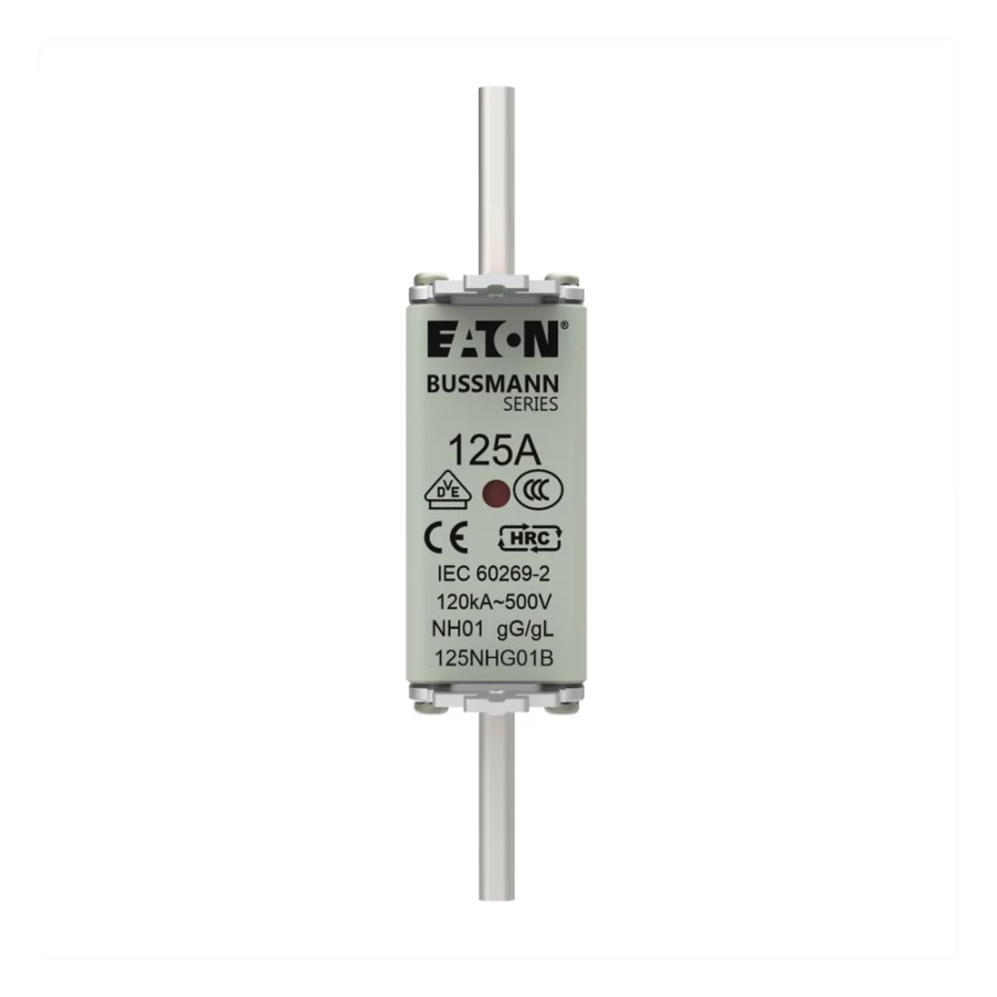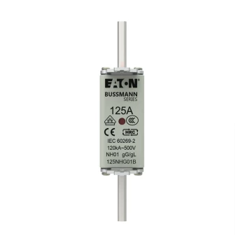 Wkładka bezpiecznikowa, LV, 125 A, AC 500 V, NH01, gL/gG, IEC, podwójny wskaźnik o numerze katalogowym 125NHG01B w kategorii Wkładki bezpiecznikowe NH1, Wkładki bezpiecznikowe NH. Produkt wyprodukowany przez markę EATON, seria NH.