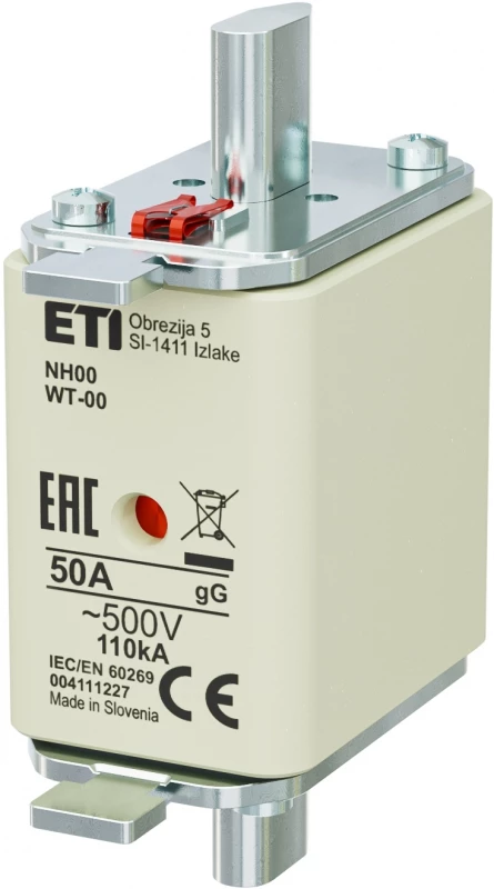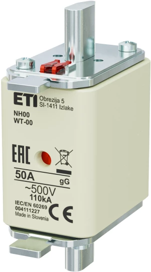 Wkładka topikowa przemysłowa zwłoczna, G NH00/WT-00 gG 50A/500V G o numerze katalogowym 004111227 w kategorii Wkładki bezpiecznikowe NH00, Wkładki bezpiecznikowe NH. Produkt wyprodukowany przez markę ETI.