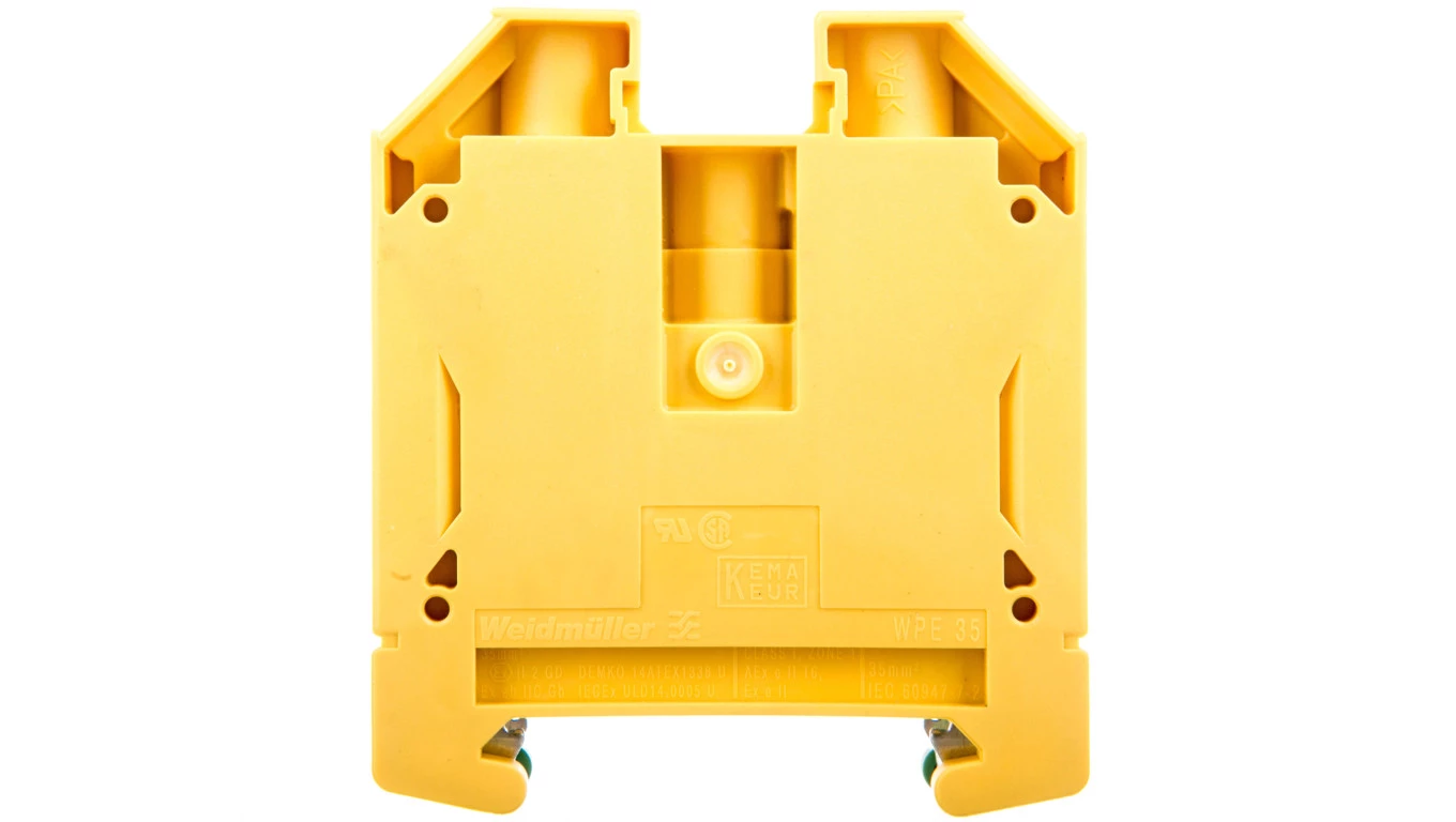 Złączka szynowa ochronna WPE 35 o numerze katalogowym 1010500000 w kategorii Złączki i zaciski ochronne śrubowe, Złączki listwowe śrubowe. Produkt wyprodukowany przez markę WEIDMULLER, seria WPE.