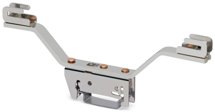 wspornik szyny zbiorczej; do szyn zbiorczych Cu 10 mm x 3 mm; dwustronny kątowy; do montażu zatrzaskowego na TS 35; srebrny