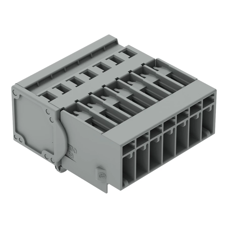 wtyk 1-przewodowy; CAGE CLAMP®; 4 mm²; raster 5 mm; 7-bieg.; TS 35/montaż na płycie; stopki zatrzaskowe; 4,00 mm²; szary