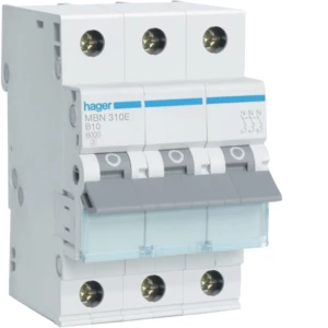 Wyłącznik nadmiarowo-prądowy, 6kA, charakterystyka B, 3-biegunowy, 10A o numerze katalogowym MBN310E w kategorii Wyłączniki nadprądowe 6kA, Wyłączniki nadprądowe. Produkt wyprodukowany przez markę HAGER.