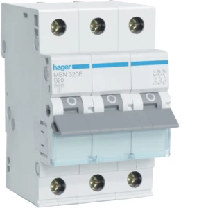 Wyłącznik nadmiarowo-prądowy, 6kA, charakterystyka B, 3-biegunowy, 20A o numerze katalogowym MBN320E w kategorii Wyłączniki nadprądowe 6kA, Wyłączniki nadprądowe. Produkt wyprodukowany przez markę HAGER.