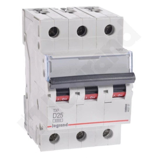 Wyłącznik nadprądowy S 303 3P D 25A 6000A TX3 o numerze katalogowym 403757 w kategorii Wyłączniki nadprądowe 6kA, Wyłączniki nadprądowe. Produkt wyprodukowany przez markę LEGRAND, seria S30TX.