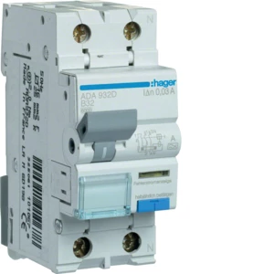 Wyłącznik różnicowoprądowy z członem nadprądowym 1P+N 6kA B 32A/30mA Typ A o numerze katalogowym ADA932D w kategorii Pozostałe, Niesklasyfikowane. Produkt wyprodukowany przez markę HAGER, seria RCBO.