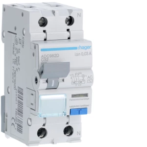 Wyłącznik różnicowoprądowy z członem nadprądowym 1P+N 6kA C 32A/30mA Typ AC o numerze katalogowym ADC982D w kategorii Pozostałe, Niesklasyfikowane. Produkt wyprodukowany przez markę HAGER, seria RCBO.