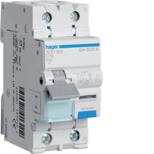 Wyłącznik różnicowoprądowy krótkozwłoczny z członem nadprądowym 1P+N 6kA C 16A/30mA Typ A-HI o numerze katalogowym ADH966 w kategorii Pozostałe, Niesklasyfikowane., seria RCBO.