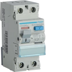 Wyłącznik różnicowoprądowy 63A, 30mA, 2 biegunowy, typ A o numerze katalogowym CDA263J w kategorii Wyłączniki różnicowoprądowe typ A, Wyłączniki różnicowoprądowe. Produkt wyprodukowany przez markę HAGER.