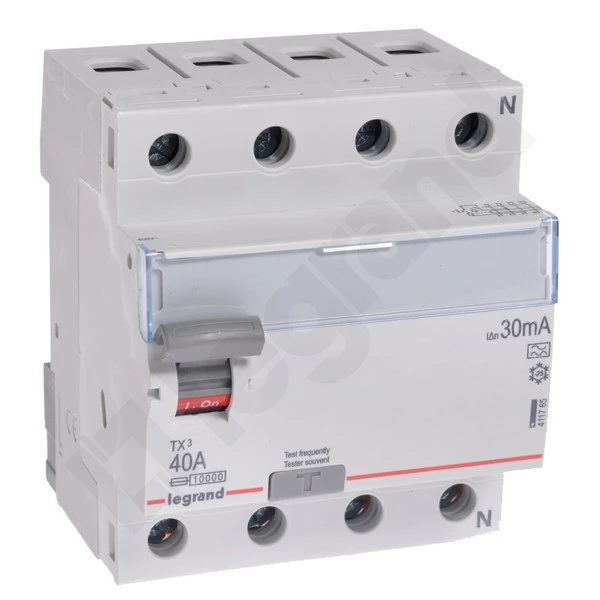 Wyłącznik różnicowoprądowy P304 4P 40A 30MA TYP A TX3 o numerze katalogowym 411765 w kategorii Wyłączniki różnicowoprądowe typ A, Wyłączniki różnicowoprądowe. Produkt wyprodukowany przez markę LEGRAND, seria P30TX.