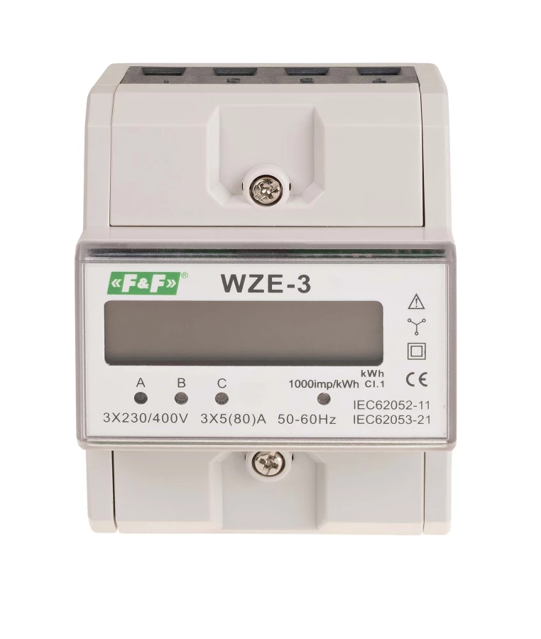 Trójfazowy licznik zużycia energii 80a, mid WZE-3 o numerze katalogowym WZE-3 w kategorii Pozostała aparatura pomiarowa, Aparatura kontrolno-pomiarowa. Produkt wyprodukowany przez markę F&F.