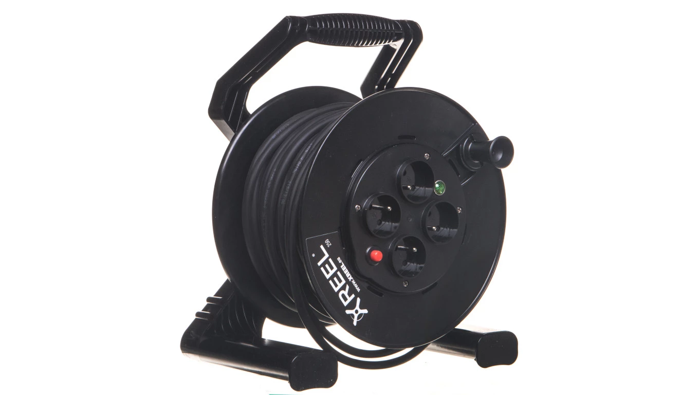 XREEL PRZEDŁUŻACZ ZWIJANY 40 MB 1-FAZ WYJŚCIE 4XGS Z TER. H05RR-F 3X1,5 WTYCZKA GUMOWA 16A IP20