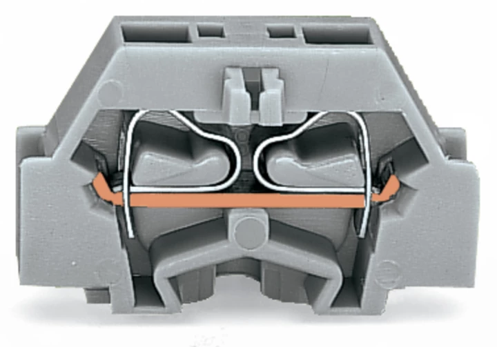 złączka 2-przewodowa; bez przycisków; ze stopką zatrzaskową; 1-bieg.; do płyty o grubości 0,6 ... 1,2 mm; otwór montażowy Ø 3,5 mm; 2,5 mm²; CAGE CLAMP®; 2,50 mm²; jasnoszary