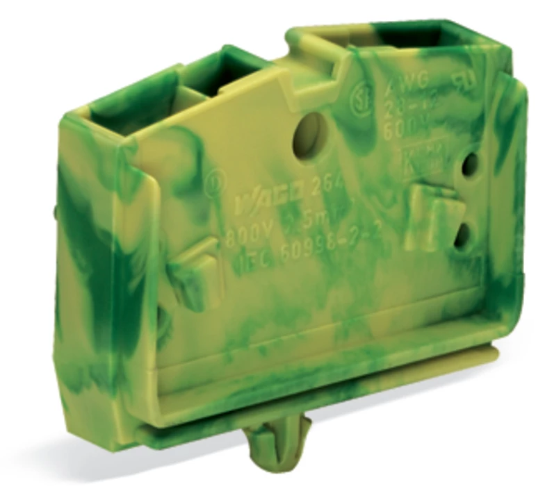 Złączka 2-przewodowa 2,5mm2 żółto-zielona ze stopką montażową 264-317 /100szt./