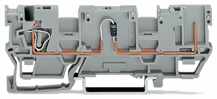 zł. baz. do zab. el. 1-przew./1-pinowa; z podwójnym mostkowaniem; z diodą 1N4007; anoda po prawej; na szynę TS 35 x 15 i 35 x 7,5; 4 mm²; CAGE CLAMP®; szary