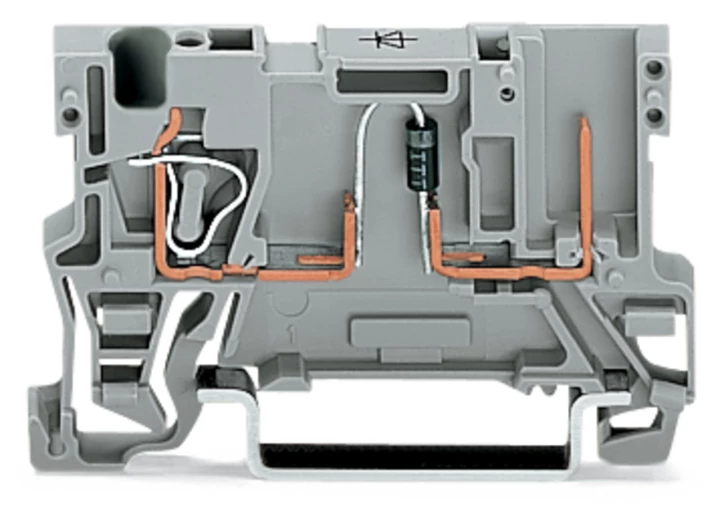 zł. baz. do zab. el. 1-przew./1-pinowa; z diodą 1N4007; anoda po prawej; na szynę TS 35 x 15 i 35 x 7,5; 4 mm²; CAGE CLAMP®; szary