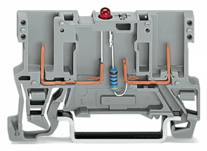 2-pinowa zł. bazowa do zabudowy element.; LED czerwona; 24 V DC; na szynę TS 35 x 15 i 35 x 7,5; szary