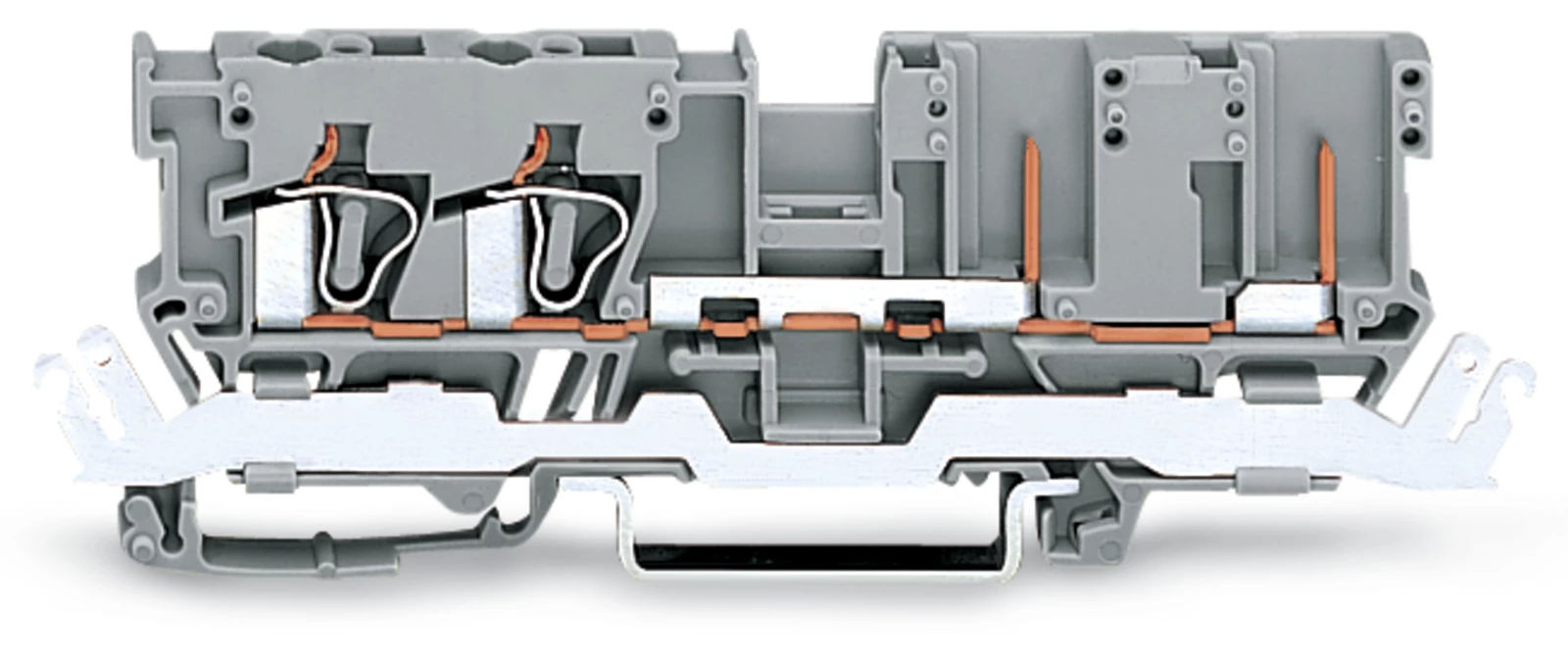 złączka bazowa 2-przewodowa/2-pinowa; z szyną ekranową; na szynę TS 35 x 15 i 35 x 7,5; 4 mm²; CAGE CLAMP®; 4,00 mm²; szary