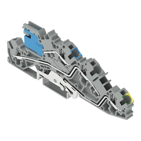 złączka instalacyjna piętrowa; z otworem montażowym; 4 mm²; z łącznikiem suwakowym N; NT/L/PE; Push-in CAGE CLAMP®; 4,00 mm²; szary