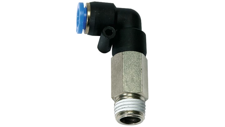 Złączka pneumatyczna wtykowa kątowa przedłużona R 1/8 GZ do węża fi 6 mm, tworzywo sztuczne