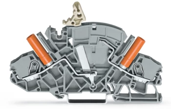 złączka rozłączalno-pomiarowa 2-przewodowa; np. do przekładników napięciowych; z izolowanymi gniazdami pomiarowymi; do wtyku pomiarowego Ø 4 mm; na szynę TS 35 x 15 i 35 x 7,5; 6 mm²; Push-in CAGE CLAMP®; 6,00 mm²; szary