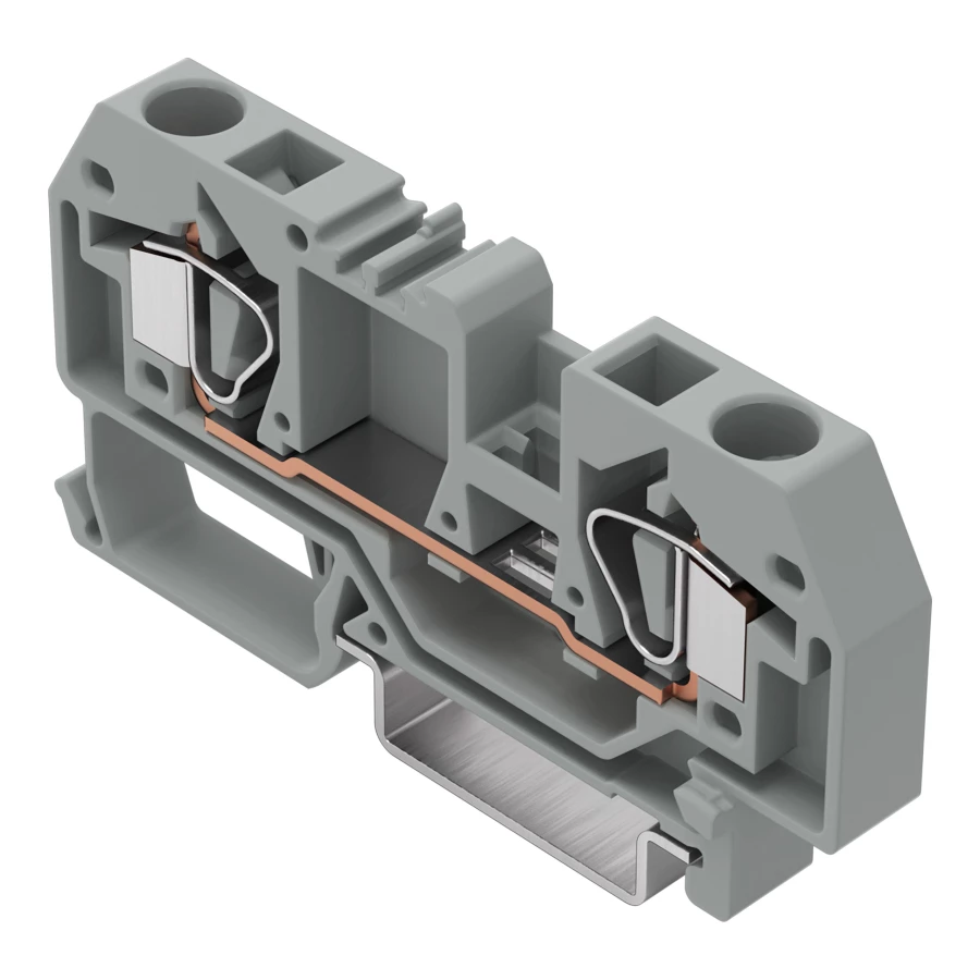 złączka przelotowa 2-przewodowa; 6 mm²; opis na środku; na szynę TS 35 x 15 i 35 x 7,5; CAGE CLAMP®; 6,00 mm²; szary