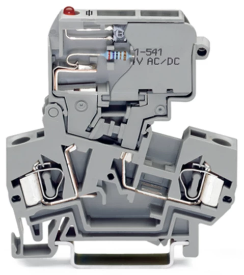 złączka bezpiecznikowa 2-przewodowa; z uchylną podstawką bezpiecznika; do wkładki bezpiecznikowej aparatowej 5 x 30 mm; z sygnalizacją przepalenia wkładki przez LED; 15 - 30 V; na szynę TS 35 x 15 i 35 x 7,5; 4 mm²; CAGE CLAMP®; szary