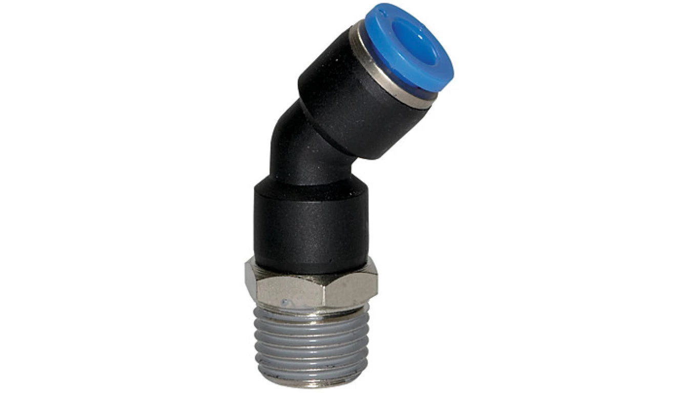 Złączka wtykowa kątowa 45st. z tworzywa sztucznego do węża 6, gwint metryczny M6z, 154.006-6