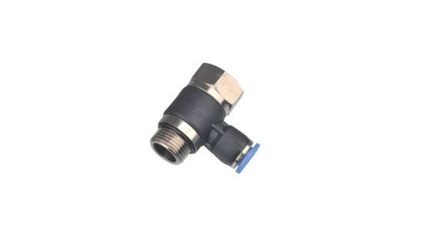 Złączka wtykowa kątowa przelotowa typu banjo, gwint zewnętrzny/wewnętrzny G1/4z - G1/4w, do węża 12, TS/MN, 221.014-12