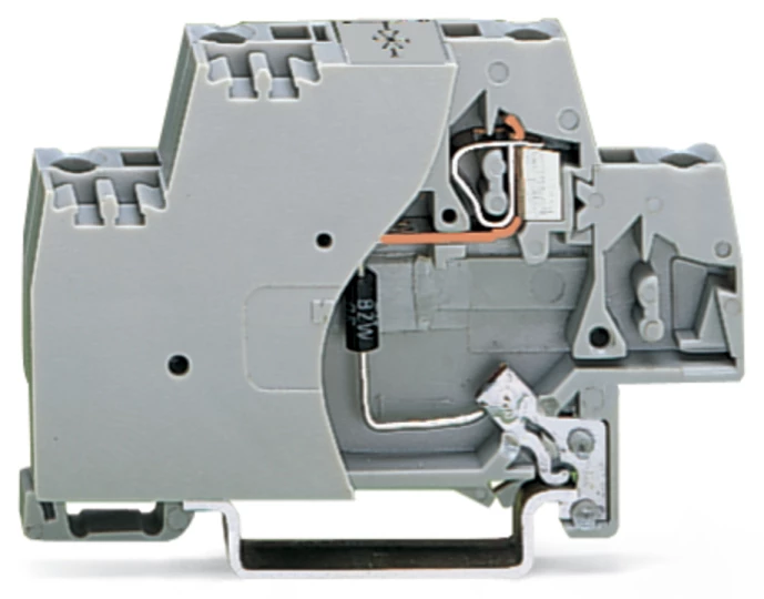 złączka do zabudowy elementów; 2-piętr.; ze ścianką końcową i bezpośrednim połączeniem z szyną montażową; z diodą transil 1.5KE39CA; 24 V AC; na szynę TS 35 x 15 i 35 x 7,5; 2,5 mm²; CAGE CLAMP®; szary