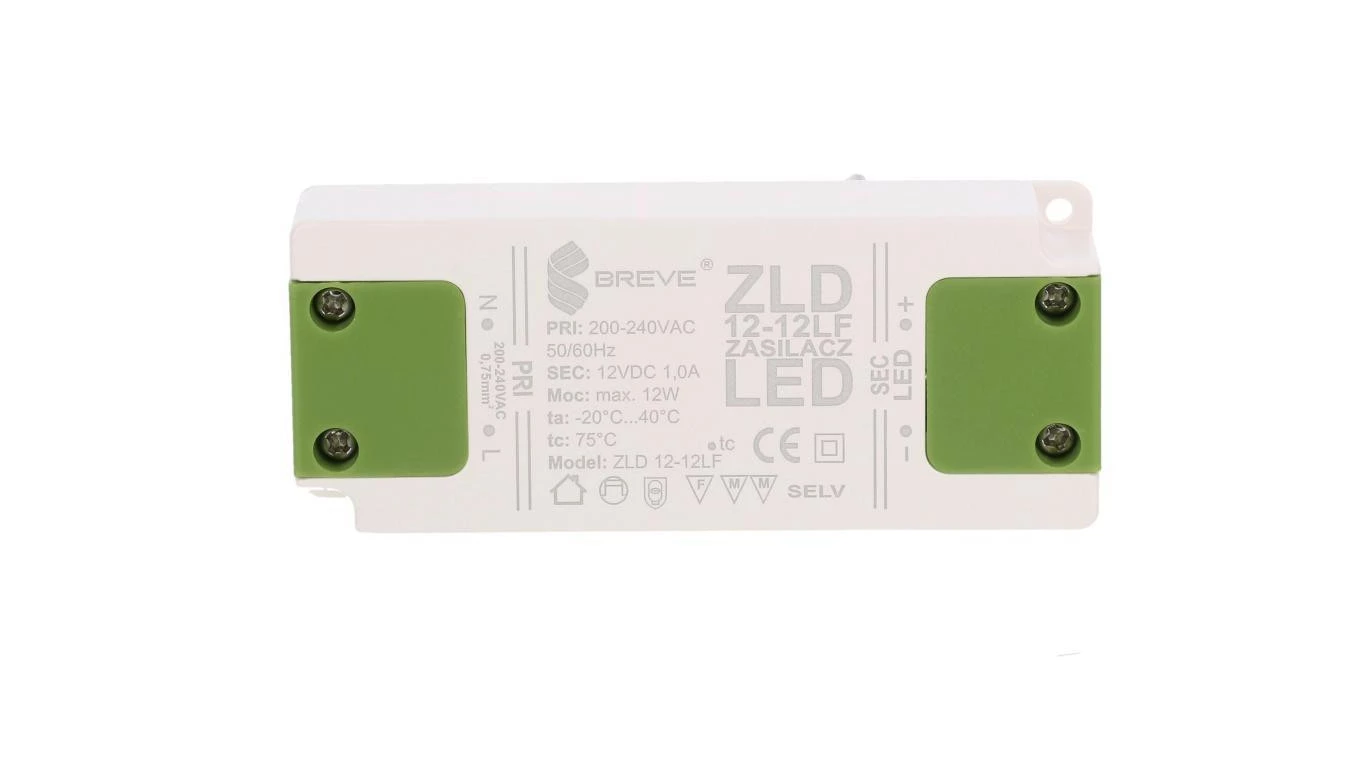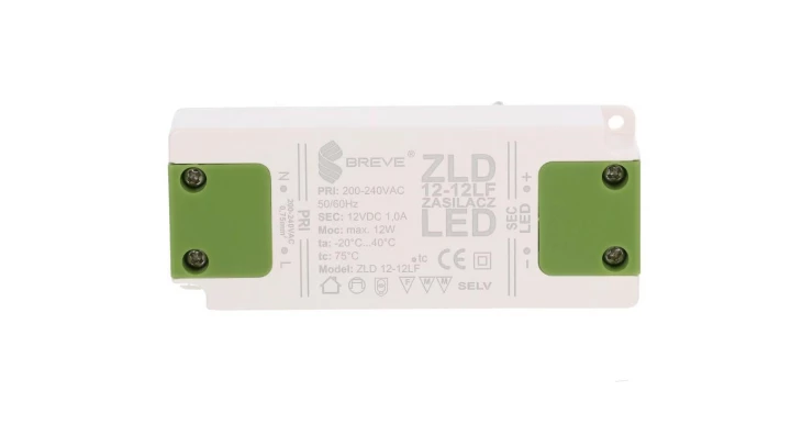 Zasilacz ZLD 12-12LF 1,0A o numerze katalogowym 19712-9027 w kategorii Zasilacze do Led, Zasilacze. Produkt wyprodukowany przez markę BREVE, seria ZLD.