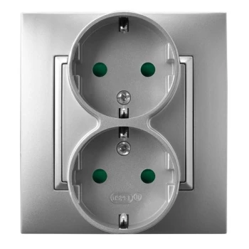 ARIA SREBRNY GNIAZDO 2X SCHUKO Z PRZESŁONAMI ZACISKI ŚRUBOWE 16A 250V