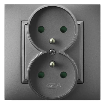 ARIA MODUŁ SZARY MAT GNIAZDO 2X Z/U Z PRZESŁONAMI ZACISKI ŚRUBOWE 16A 250V