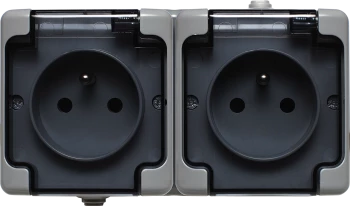 BRYZA Gniazdo hermetyczne podwójne z/u IP54 z klapką dymną szare 180036