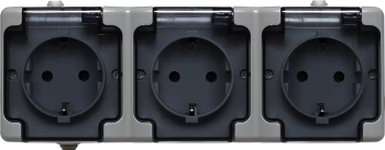 BRYZA Gniazdo potrójne poziome IP54 klapka matowa 10AX 250V czarne 180940