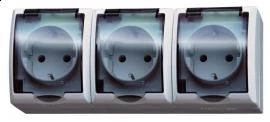 FALA BIAŁY GNIAZDO NT 3X SCHUKO Z KLAPKĄ DYMNĄ IP44 ZACISKI ŚRUBOWE 16A 250V