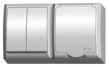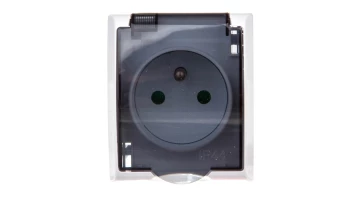 FALA POPIEL/GRAFIT ŁĄCZNIK 1-BIEGUNOWY + GNIAZDO 1X IP-44 Z KLAPKĄ PRZEZROCZYSTĄ ZACISKI ŚRUBOWE