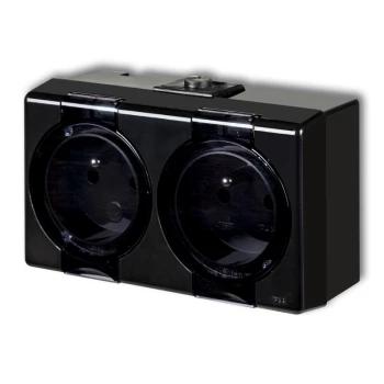 SENIOR Gniazdo podwójne z uziemieniem 2x(2P+Z) (klapka dymna) czarny 12GHS-2nd