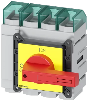 Rozłącznik główny/awaryjny 3P 250A 132kW AC23A 400V montaż tablicowy pokrętło żółto-czerwone piórkowe 4 otwory 3LD2405-0TK13