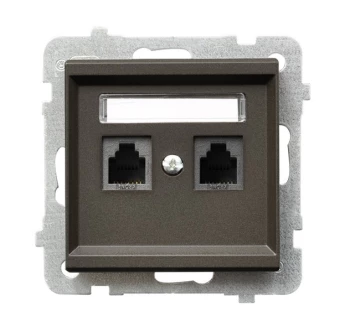 SONATA Gniazdo telefoniczne podwójne RJ11 równoległe czekoladowy metalik GPT-2RR/m/40