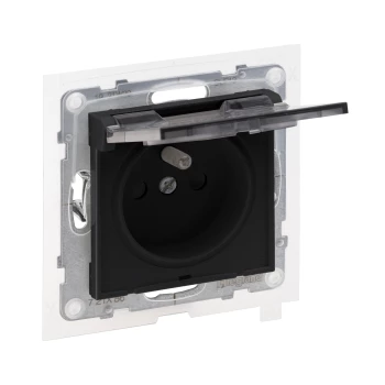 SUNO 2 MODUŁ CZARNY GNIAZDO 1X Z/U Z KLAPKĄ IP44 ZACISKI SPRĘŻYNOWE 16A 250V